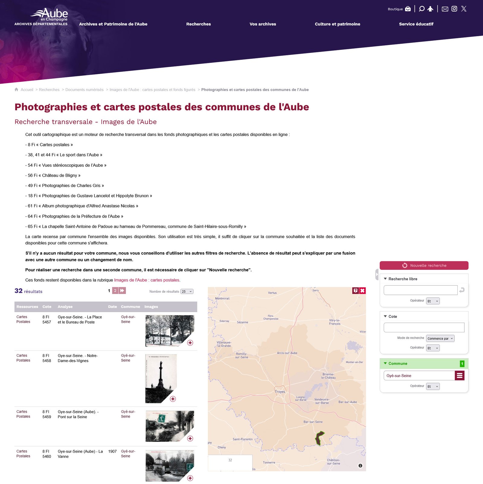 Non seulement les Archives de l’Aube comptent parmi celles qui ont de nombreux fonds iconographiques en ligne, mais en plus, dorénavant, elles disposent d’un nouvel outil de recherche de ces images à partir d’une carte géographique. De quoi ravir les chercheurs qui veulent illustrer leur généalogie.