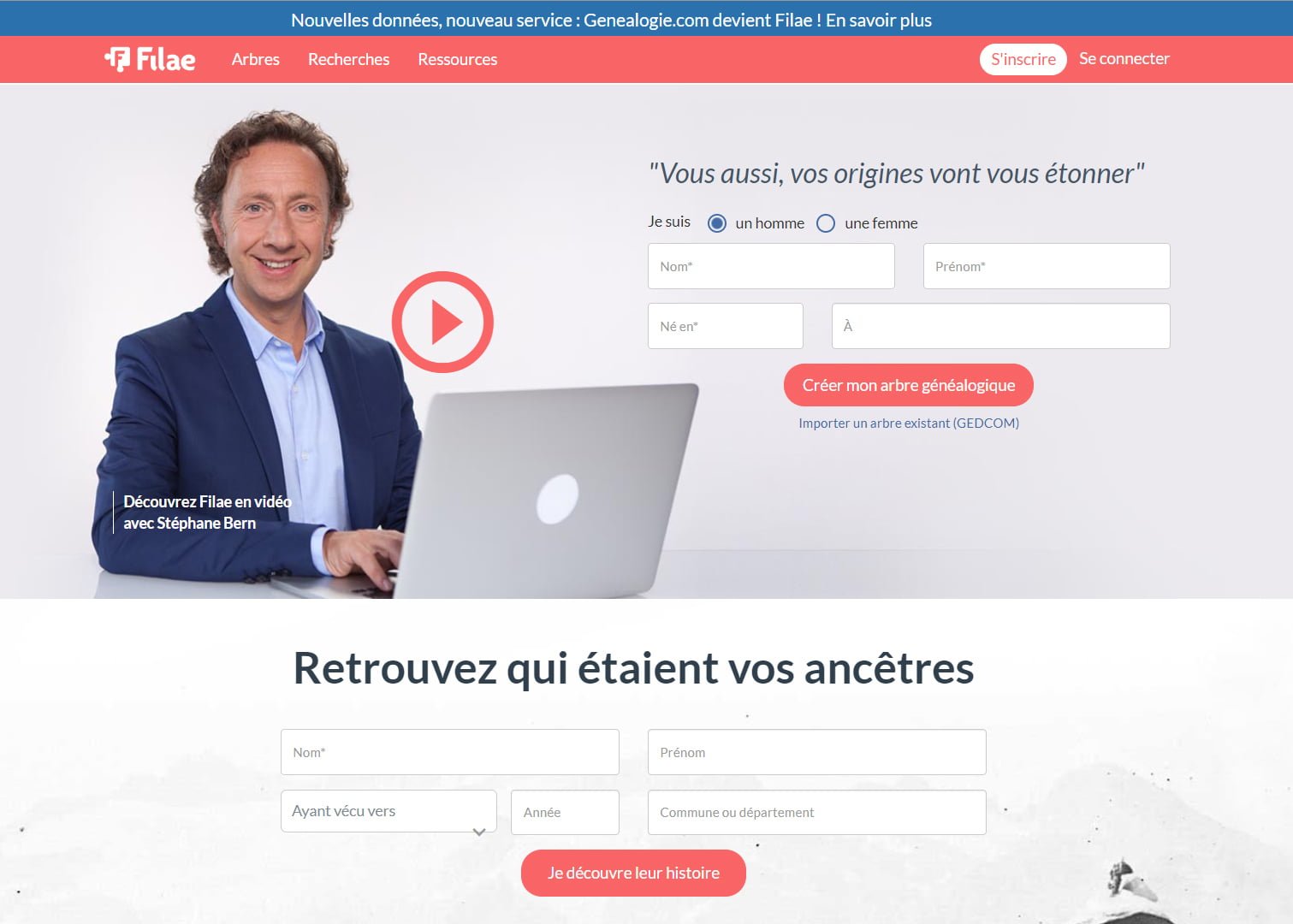 La généalogie de Filae remonte aux années 1990’, date à laquelle les bases de données commencent à fleurir sur le Minitel. Le projet se développera sur Internet, avec la création de Famille.com puis Genealogie.com avant de prendre sa pleine ampleur sous la marque de Filae.com.