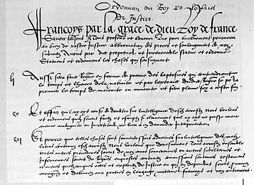 - Août 1539 : Ordonnance de Villers-Cotterêts