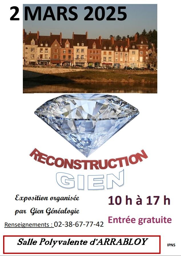 [[{“value”:”Exposition généalogique sur les acteurs de la reconstruction de la ville de Gien après la seconde guerre mondiale.
