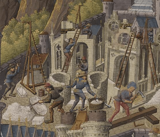Vieux métiers. – maçons au Moyen âge