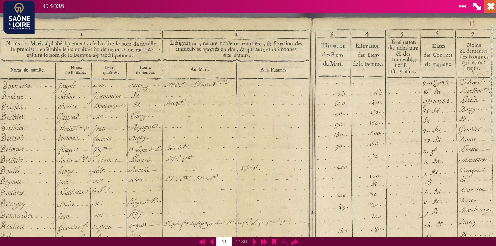 Le Contrôle des actes a été institué en 1693 pour enregistrer tous les actes notariés. Ses registres sont de puissants outils de recherches pour identifier un notaire et retrouver les actes passés par nos ancêtres. Ils viennent d’être numérisés et mis en ligne par les Archives de Saône-et-Loire.