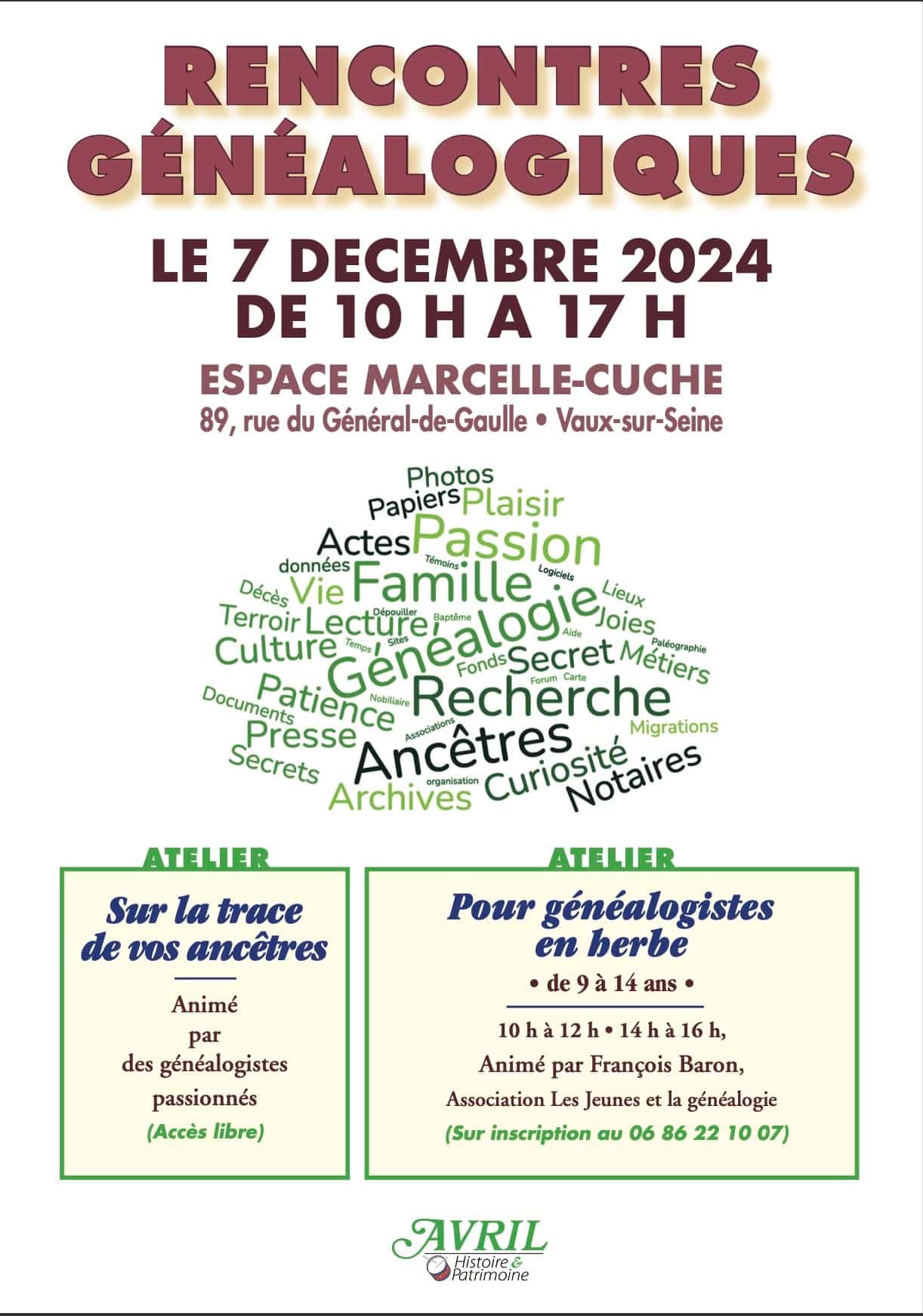 [[{“value”:”Rencontres Généalogiques sous la forme de 2 ateliers :
