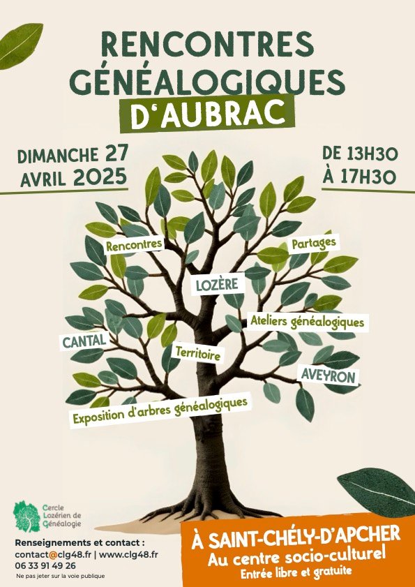 Le Cercle lozérien de généalogie organise le 27 avril 2025 une rencontre avec les amateurs de généalogie.