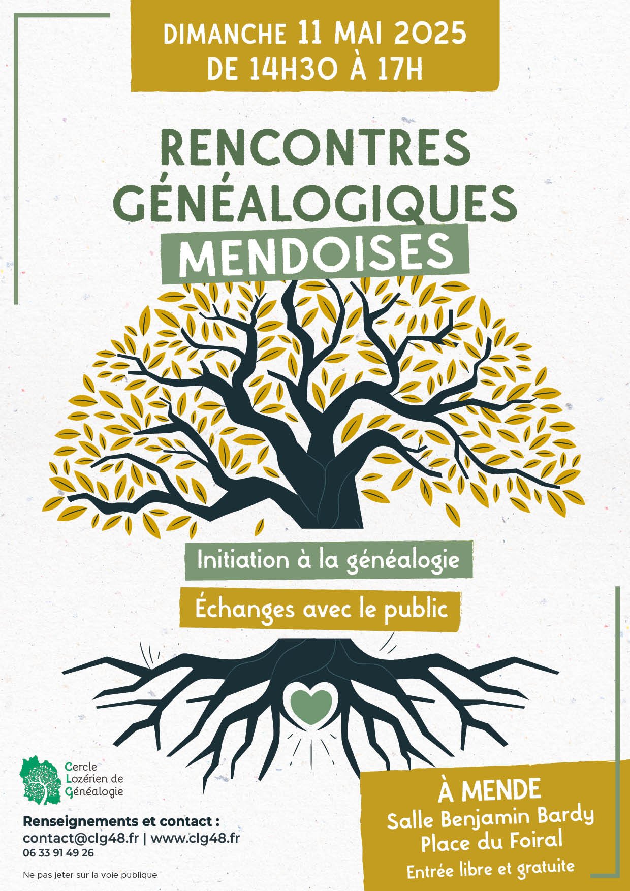 Le Cercle lozérien de généalogie (CLG48) organise une rencontre généalogique à Mende qui se tiendra le dimanche 11 mai 2025.