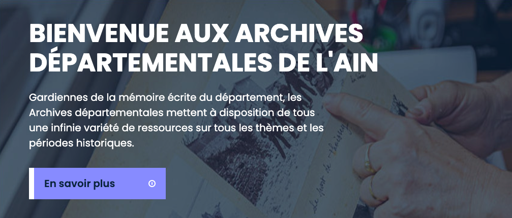 Les Archives départementales de l’Ain inaugurent une nouvelle version de leur site internet. Plus intuitif et riche en fonctionnalités, il permet d’explorer 7 millions d’images et 1.000 instruments de recherche, avec des outils spécialement conçus pour les archives iconographiques et cadastrales.